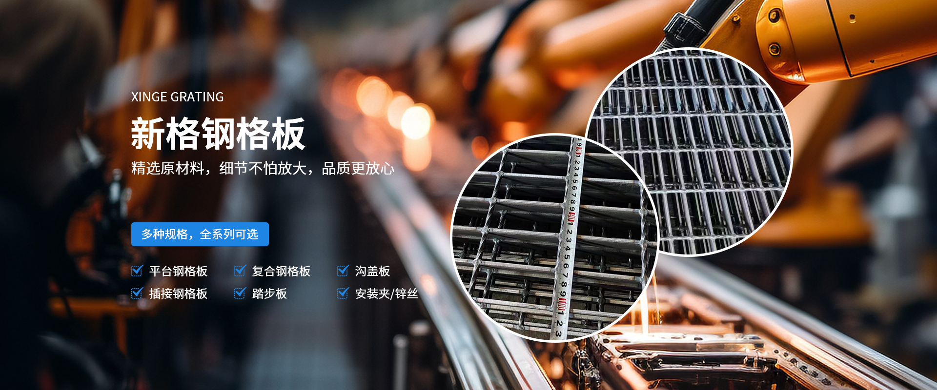 河南新格重工有限公司成立于2007年,占地36000余平方米,是河南省專注于鋼格板設計、制造、銷售的加工制造企業。公司一貫秉承“打造全國鋼格板基地”的企業理念,在“創新、務實、奉獻”的企業精神指引下,逐漸成長為一家具有現代化管理理念、優良的企業文化及靈活的經營機制的創新型加工制造企業?! 」静捎媚壳笆澜缟锨靶l的制造技術,由計算機控制的鋼格板壓阻焊機制造,機械手自動將橫桿橫放在均勻排列的扁鋼上,通過強大的電焊功率和液壓力將橫桿壓焊入扁鋼內,從而得到焊點固定、穩定性高、強度大的高質量鋼格板。公司擁有成熟的CAD設計、制造技術以及優良的工程設施經驗,獨立自主的進出口貿易資質,通過ISO9001資質體系認證。所生產的鋼格板系列產品從外觀質量、尺寸公差、焊接質量等方面均滿足客戶的需求。公司可按中國鋼格板YB/T4001.1-2007標準生產,也可按符合美國ANSI/NAAMM(MBG531-88)、英國BS4592-1987、澳大利亞AS1657-1985等標準進行生產。產品暢銷全國三十多個省、市、自治區,并有部分產品出口到國外,給上百家大型企業提供了堅實可靠的服務,得到了廣大用戶的一致肯定?! 」臼冀K堅持“視品質為生命,視顧客為上帝”的經營宗旨,依托成熟的技術力量及良好的企業信譽,竭誠為廣大用戶提供高質量的產品及全方面的售前、售中、售后服務?! ∥覀內w新格人將帶著真誠的期望,一如既往地以具有競爭力的價格、高質量的產品為工程項目提供盡善盡美的服務,并希望與用戶單位建立長久有好的合作伙伴關系!